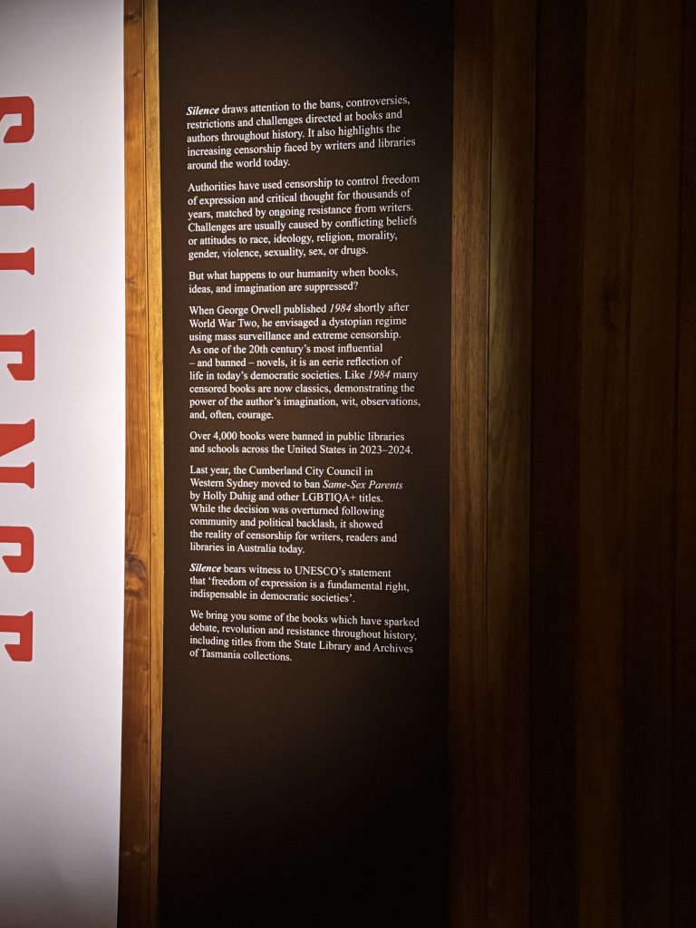 The State Library and Archives of Tasmania has curated and displayed a collection of books that have been challenged throughout history, and today. This exhibition represents and interprets diverse points of view through a collection of banned, restricted and controversial books. Read some of these books and more during your visit in the ‘Silenced Reading’ library.