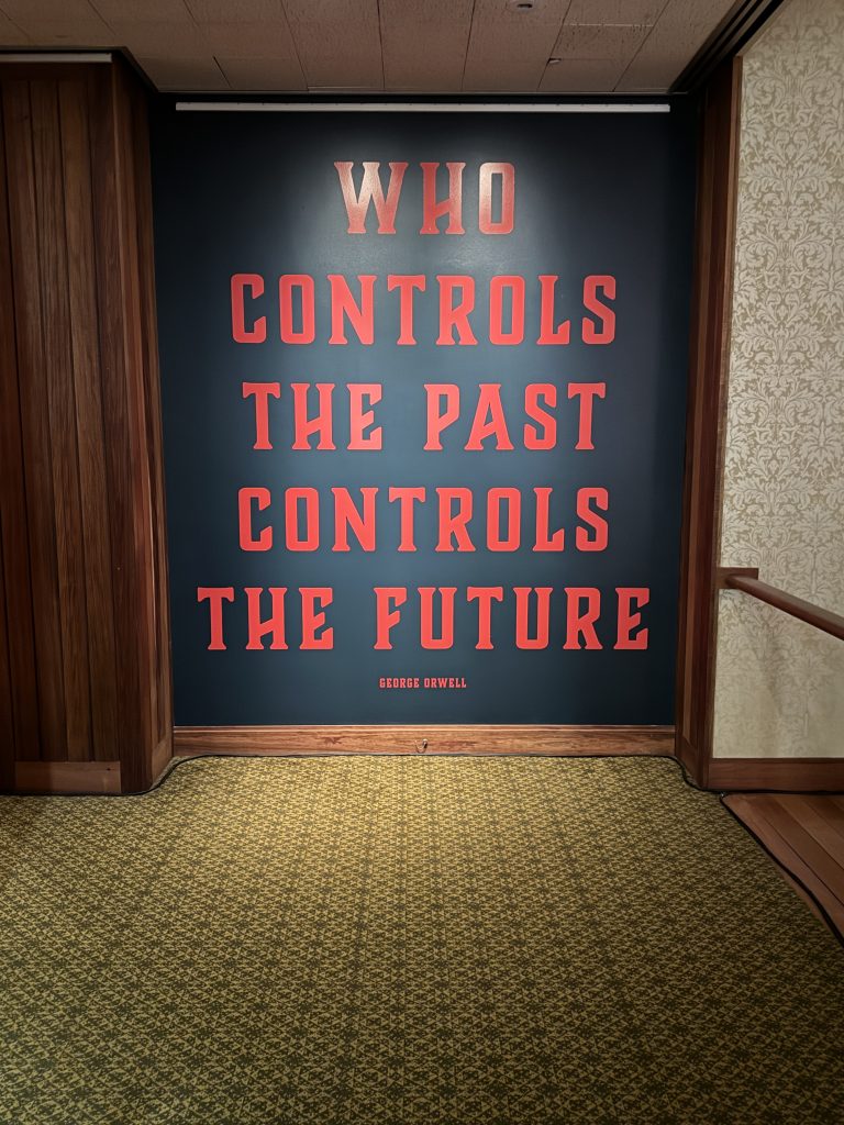 Revolution & Silence includes an installation by Tasmanian artist Brigita Ozolins in the gallery of the Allport Library and Museum of Fine Arts. The exhibition considers George Orwell’s 1984, exploring the forces that try to silence free speech and the revolutions that rise in response. These works contextualise Orwell’s novel amongst contemporary political upheaval, AI, fake news, and the unchecked power of social media.